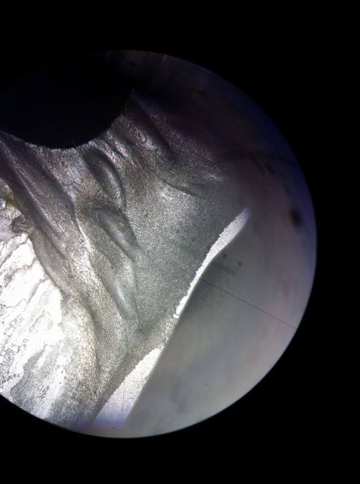 Mit einer Kamera die glaub ich von Aliens gewesen ist so geil war die hat er bis ganz tief "in die Wunde" geschaut, ob im Material noch weitere Risse drin sind...was nicht der Fall gewesen ist :) (Foto hab ich durch das Mikroskop gemacht).