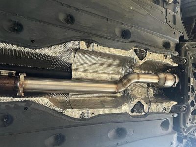 - Besonderheit BTS R500 handmade Edelstahl Downpipe, verstärkt mit 130mm Unterfloor Spezial Kat mit TÜV.