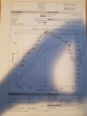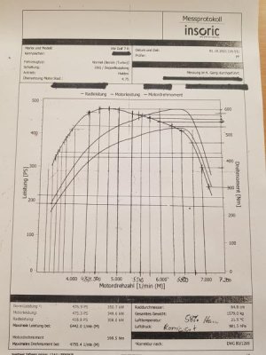 491.4 PS bei 6290UpM (Rückrechnung ergab ca. 465 realo PS)