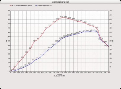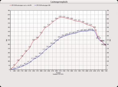 Hinweis: nach Adaption soll sich das Drehmoment noch nach unten hin verschieben und soll bei 600NM liegen. Die Leistung bleibt ansonsten soweit identisch.