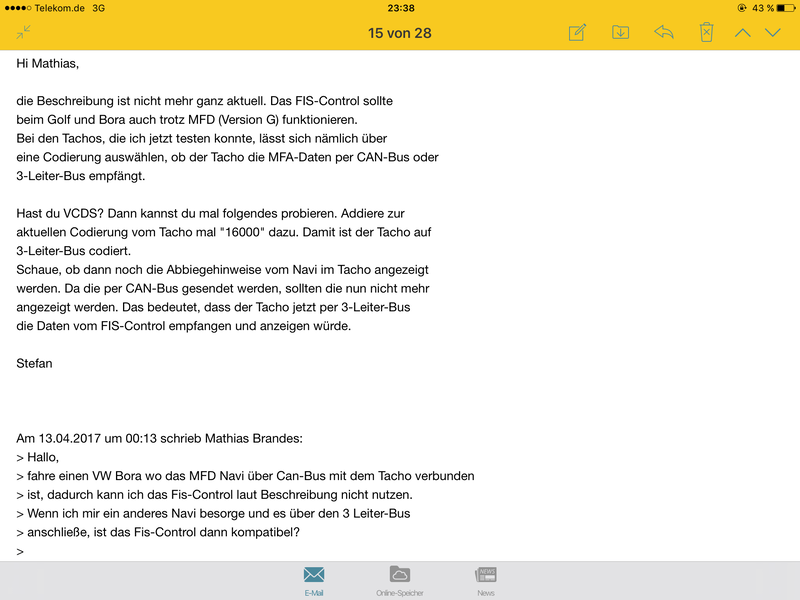 Eigentlich finde ich die FIS control Geschichte ganz gut. Funktioniert bei mir aber leider nicht, weil ich ein Navi drin habe *noahnung*