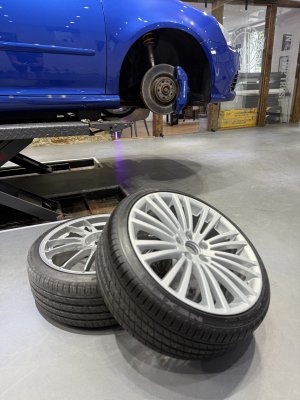 Seid 2 Wochen knapp ist bei mir die Porsche Bremse mit der 350mm Scheibe eingetragen sowie das GW Fahrwerk, Stahlflexleitung, 3mm Distanzen an der VA und meine Ultraleggeras. :party::party::party: