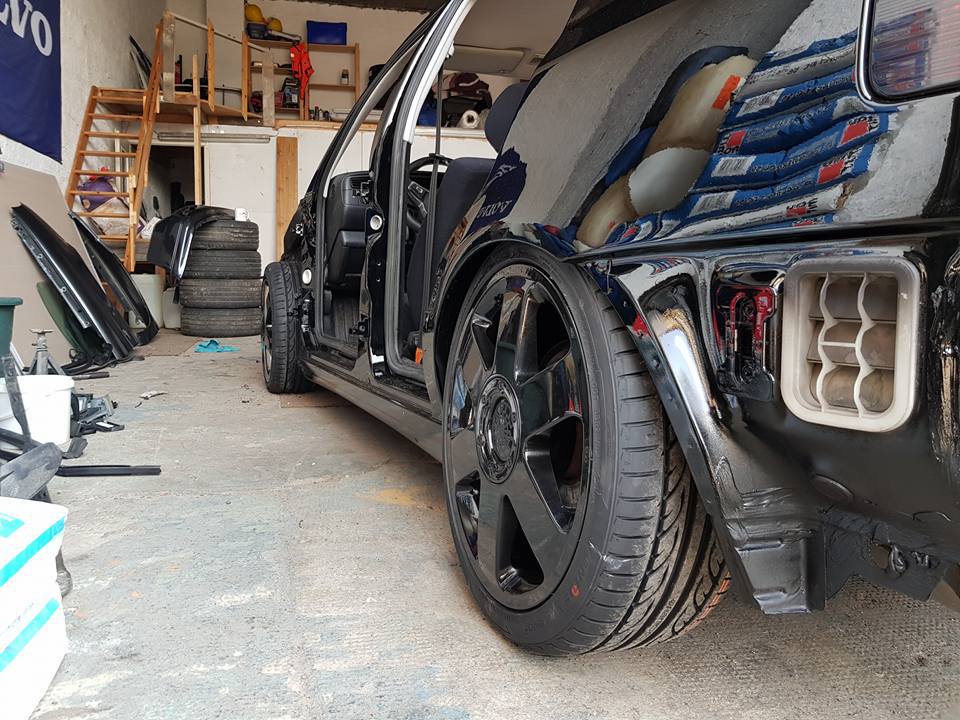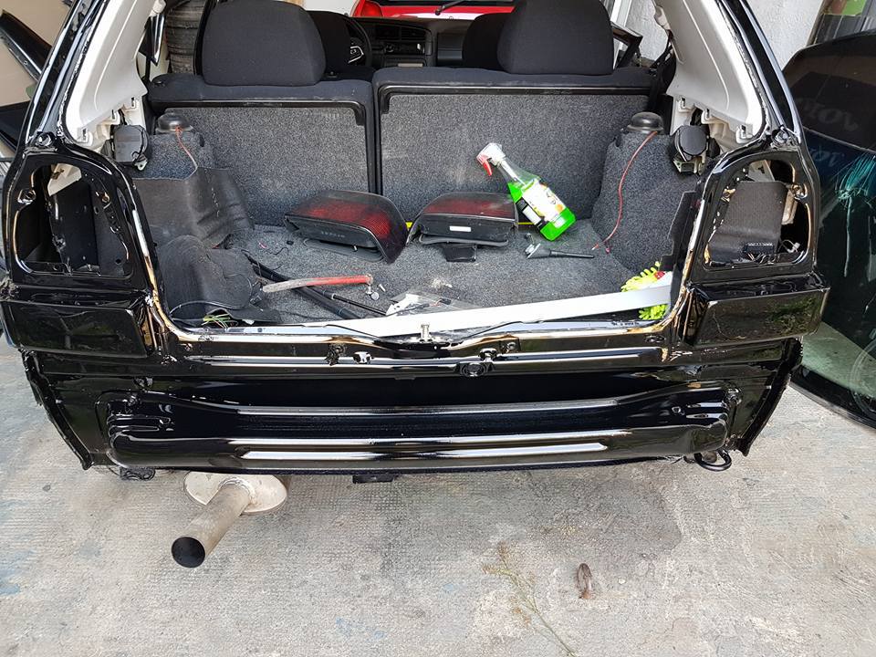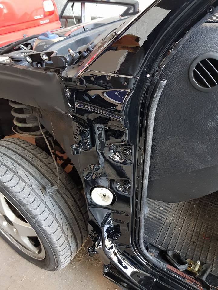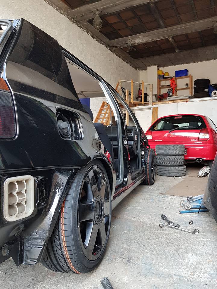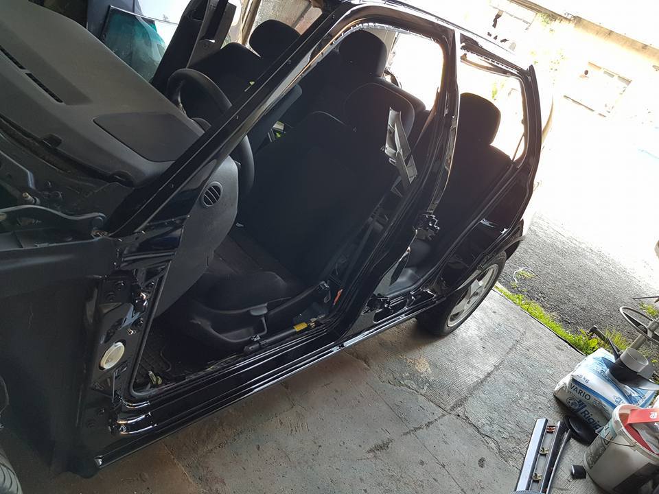Als erstes ging das Baby zum Lack, einmal Komplett im schwärzestem Schwarz was es gibt mit 3 Klarlackschichten, Vollschalensitze, Wiecher Clubssport Bügel mit Strebe