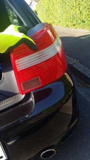 Eig sollten heute die Pacific Rückleuchten sitzen, aber ich habe gemerkt ich komme an die Schraube, welche an der Spitze von der Rückleuchte ist garnicht ran, ohne das Heck abzunehmen. Beim ''normalen'' Golf ging es gerade so..Da ich das aber nicht alleine machen will, weil es sonst danach auf halb 8 sitzt, warte ich bis wer Zeit hat und dann kommen die später rein.