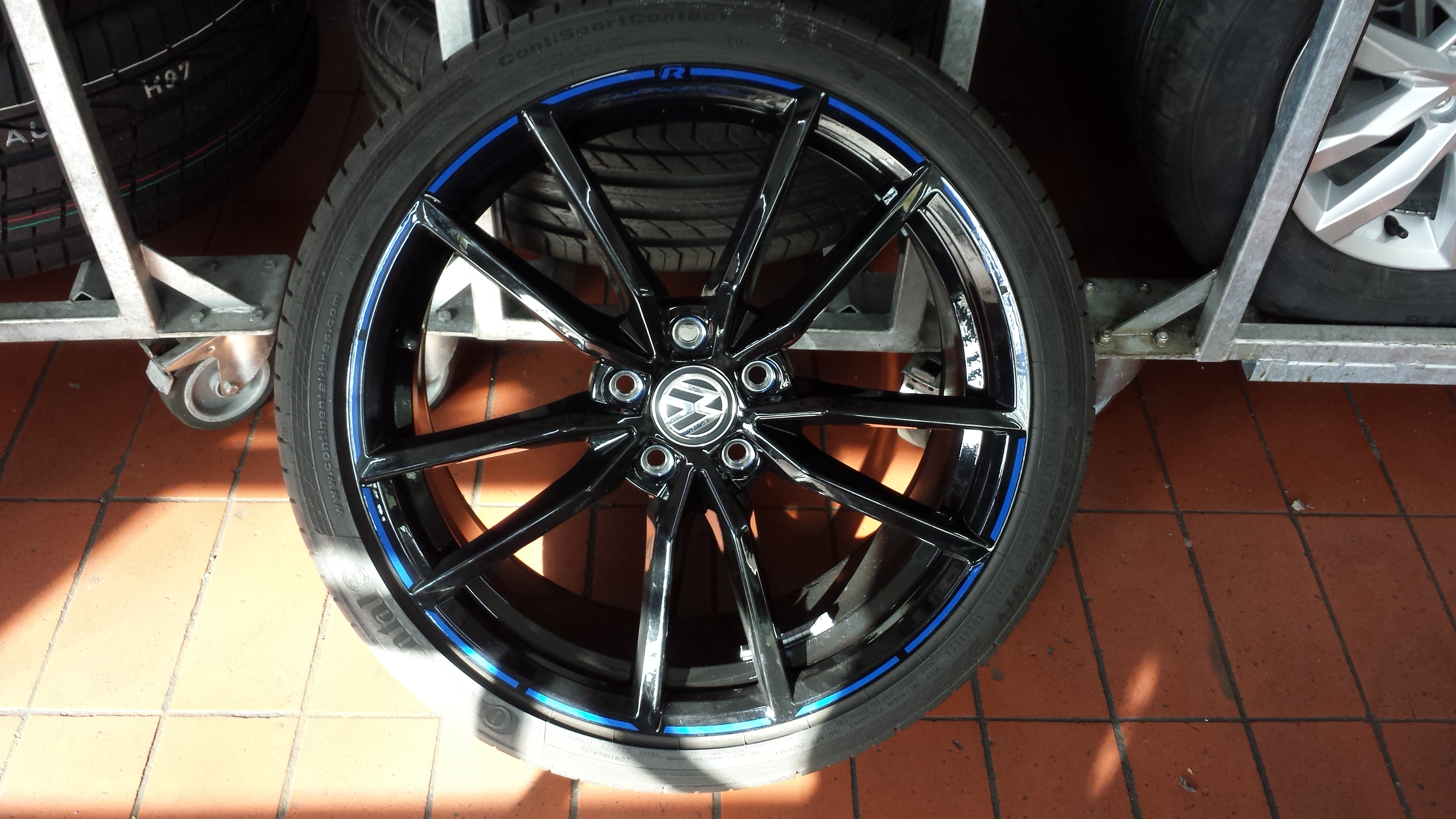 Diskutiere T-Pupser ist da im Mein 7er Forum im Bereich Golf 7 GTI / R; Hatte heute einen Satz Pretoria in Schwarz mit diesem schönen blauen Streifen "in der Hand".