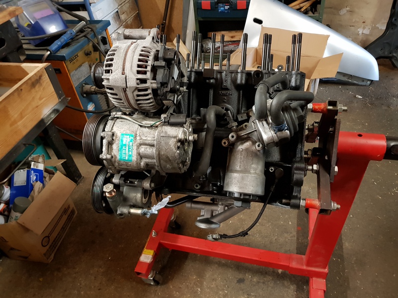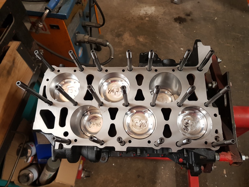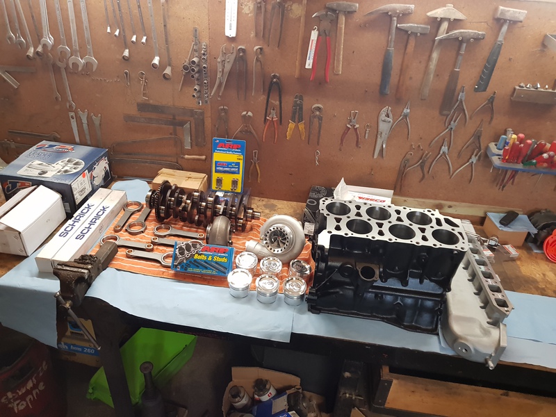 Dann den Motor komplett auseinander gebaut und zu Markus Hegna gefahren und den Block hohnen, bohren, planschleifen und lackieren zu lassen, und den Kopf überholen zu lassen.