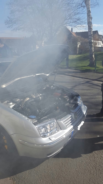 Zur Seite gefahren, Motorhaube aufgemacht, erstmal nichts gesehen wegen dem Qualm :D