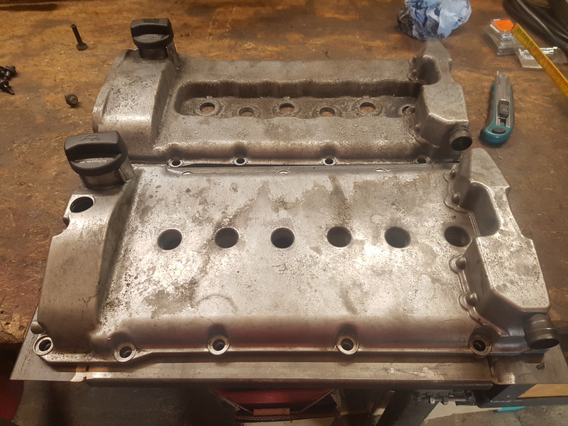 Da ich kein bock hatte nen BDE oder R32 Kopf zu nehmen, da ich sonst wieder andere NW und Auslassventile bräuchte, habe ich aus 2 Ventildeckeln einen gemacht.