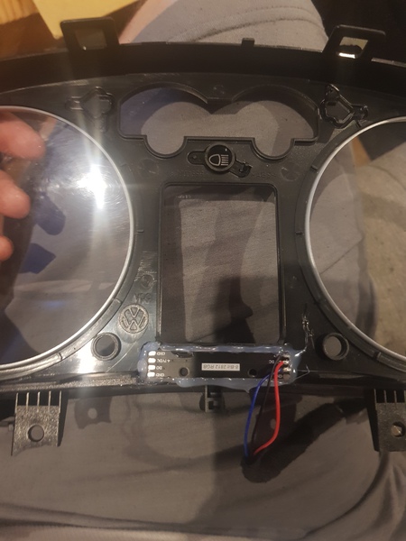 Als erstes habe uch mir eine Schaltblitzanzeige von canchecked besorgt und die im Tacho eingebaut. Da mir das Gehäuse davon zu klobig ist habe ich die Led's ausgebaut und die ohne Gehäuse im Tacho verbaut.
