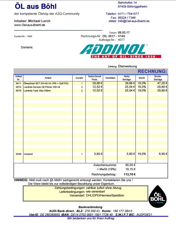 Da hast du Recht, aber die Nwv haben mittlerweile auch 40tkm LL auf der Uhr. Er hat sie zwar laut eigener Aussage auseinander genommen und gereinigt aber ich denke so ne Reinigung vor dem neuen Öl kann nicht schaden *noahnung*